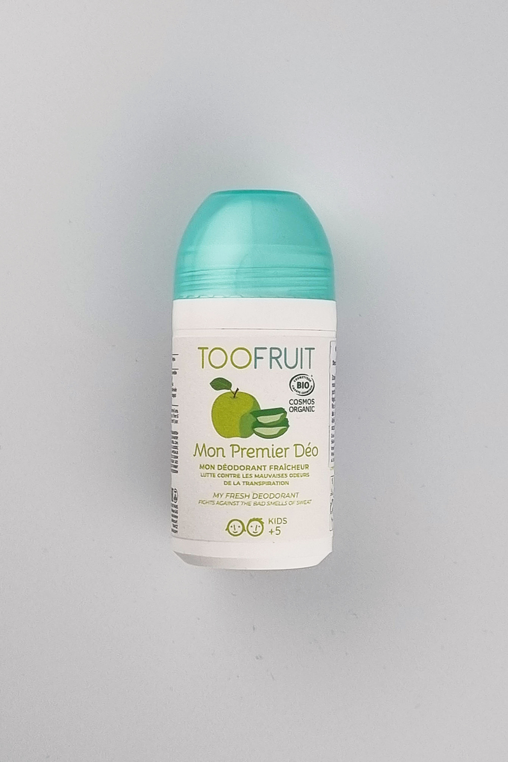 Naturalny dezodorant w kulce Toofruit dla dzieci od 5 roku życia skutecznie zwalczający nieprzyjemny zapach potu pojawiający się szczególnie intensywnie w okresie dojrzewania.