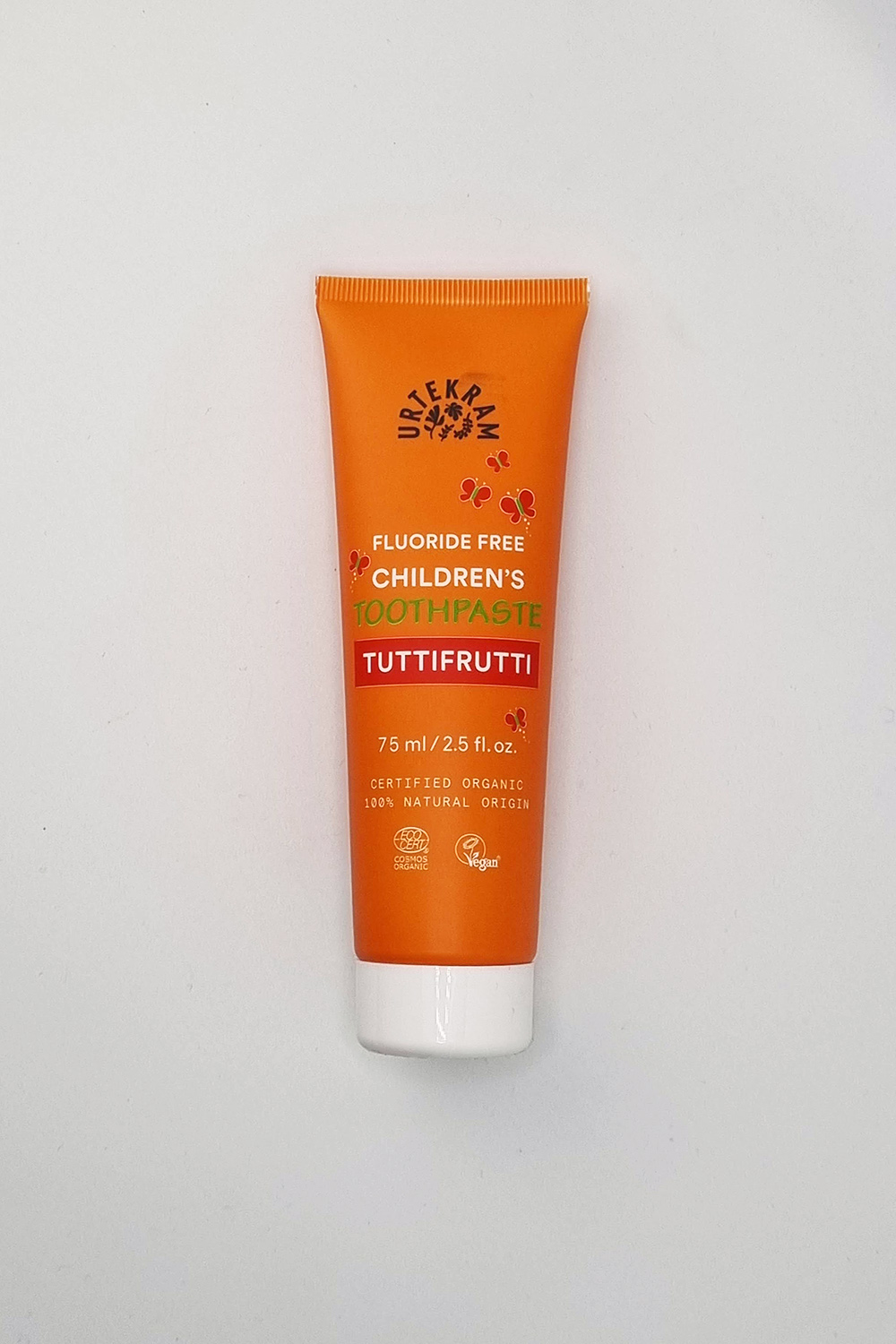 Naturalna pasta do zębów dla dzieci Urtekram. Zastosowane w paście drobinki sproszkowanego węglanu wapnia usuwają nagromadzone na powierzchni zębów osady i zanieczyszczenia. To właśnie zawartość kredy nadaje paście naturalną, jasnoszarą barwę. Wysoka zawartość aloesu chroni i pielęgnuje dziąsła. Olejek z żywicy mirry działa dezynfekująco.