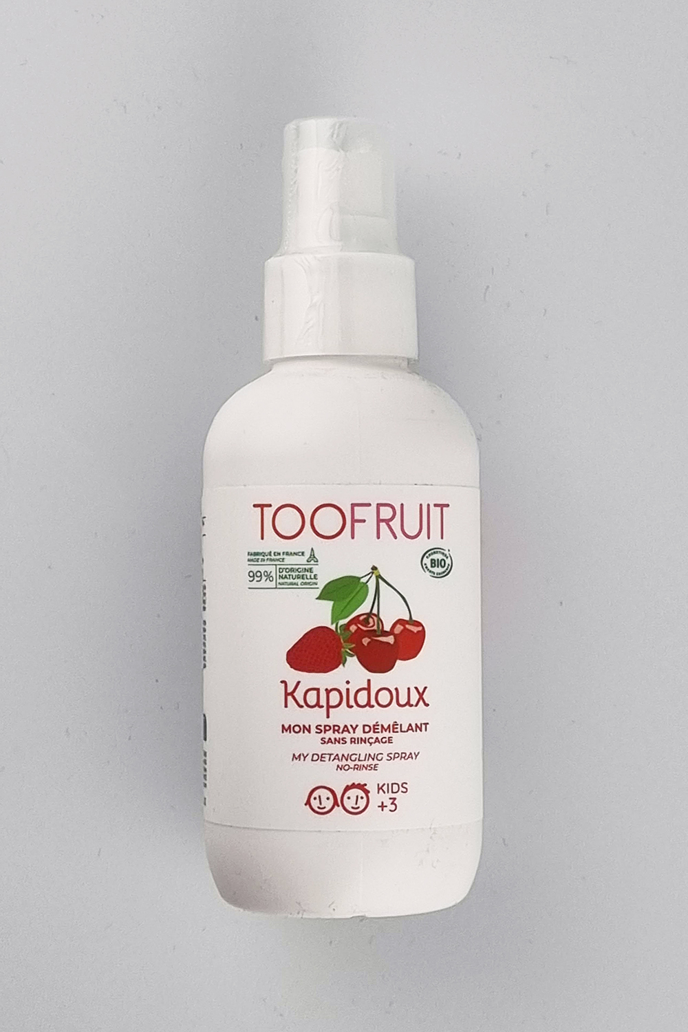 Naturalna odżywka w sprayu do włosów dla dzieci Toofruit to formuła z aktywnymi, naturalnymi składnikami rozplątująca włosy. Zawiera ekstrakty z wiśni i truskawki.