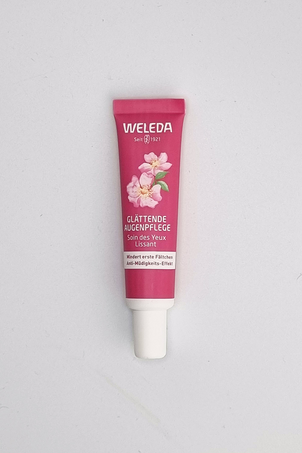 Krem Weleda​ wzmacnia delikatną barierę ochronną skóry wokół oczu i widocznie ją wygładza. Organiczny olej z dzikiej róży i ekstrakt z białej herbaty łączą siły autorskim kompleksie Age-Protection, aby skutecznie chronić przed wczesnymi oznakami starzenia. W testach in vitro udowodniono, że ekstrakt z organicznej białej herbaty ma taką samą moc antyoksydacyjną jak witamina C. Wykazano również korzyści antyoksydacyjne w 10 górnych warstwach naskórka.