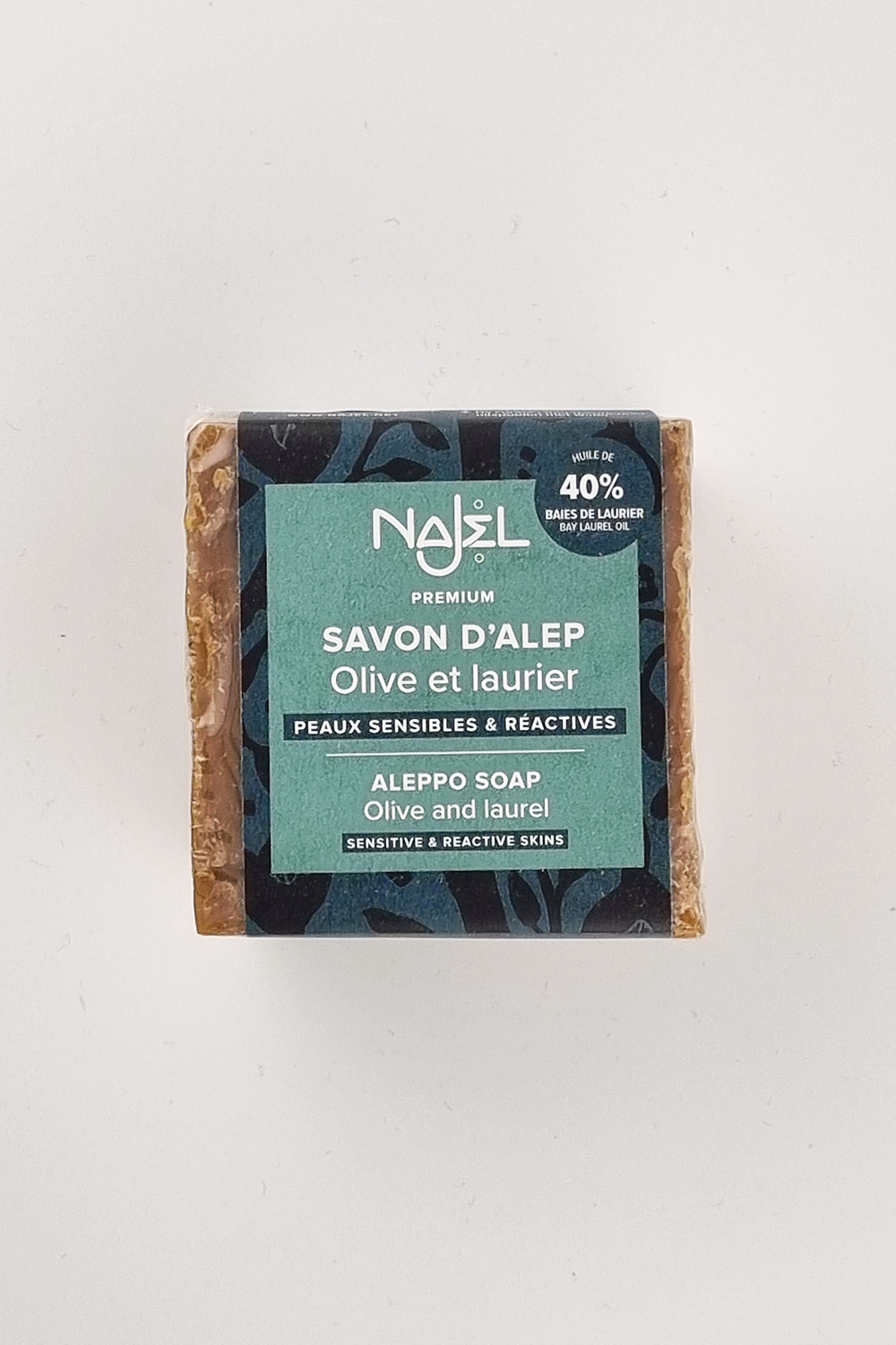 Naturalne syryjskie mydło z Aleppo Najel o 40% zawartości oleju laurowego i 60% zawartości oliwy z oliwek z upraw ekologicznych. Bogate w olej laurowy mydło jest polecane w pielęgnacji bardzo wrażliwej i problematycznej skóry. Oliwa z oliwek odżywia, chroni i zmiękcza skórę.